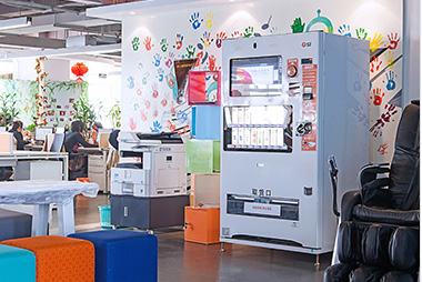 友寶已與杭州支付寶近2500名員工相伴一年。支付寶辦公區(qū)內(nèi),數(shù)十臺臺售貨機7*24小時守候,提供最貼心可靠的飲料零食及盒飯服務(wù)。 智能的友寶還為支付寶量身定制了諸多便利功能:如支持支付寶員工卡購買、接入支付寶最新的聲波支付技術(shù)等。